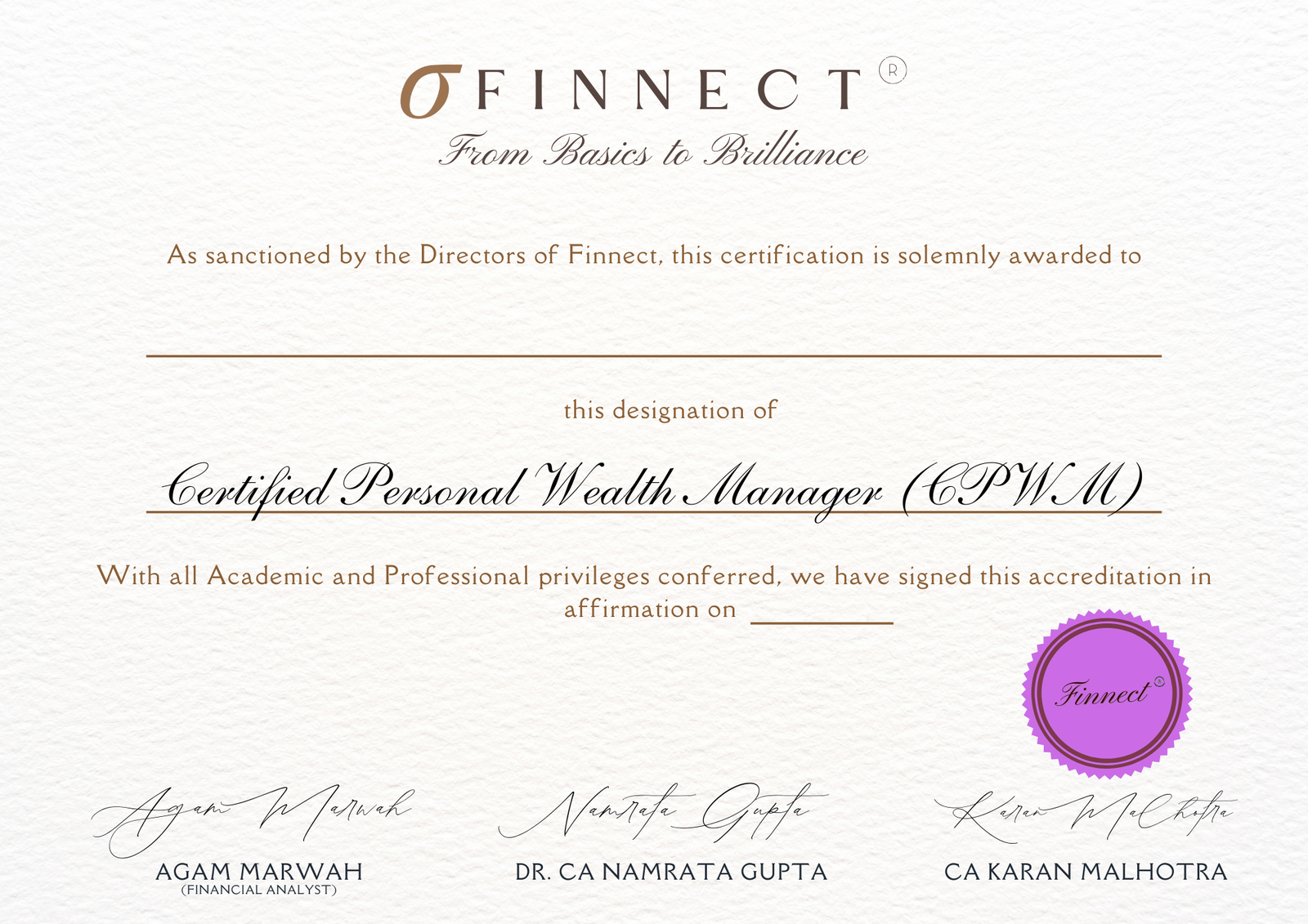 Build Expertise in Financial Planning, Portfolio Management, and Wealth Creation Strategies. Equip yourself to guide Individuals and Families in achieving Long-term Financial Security.